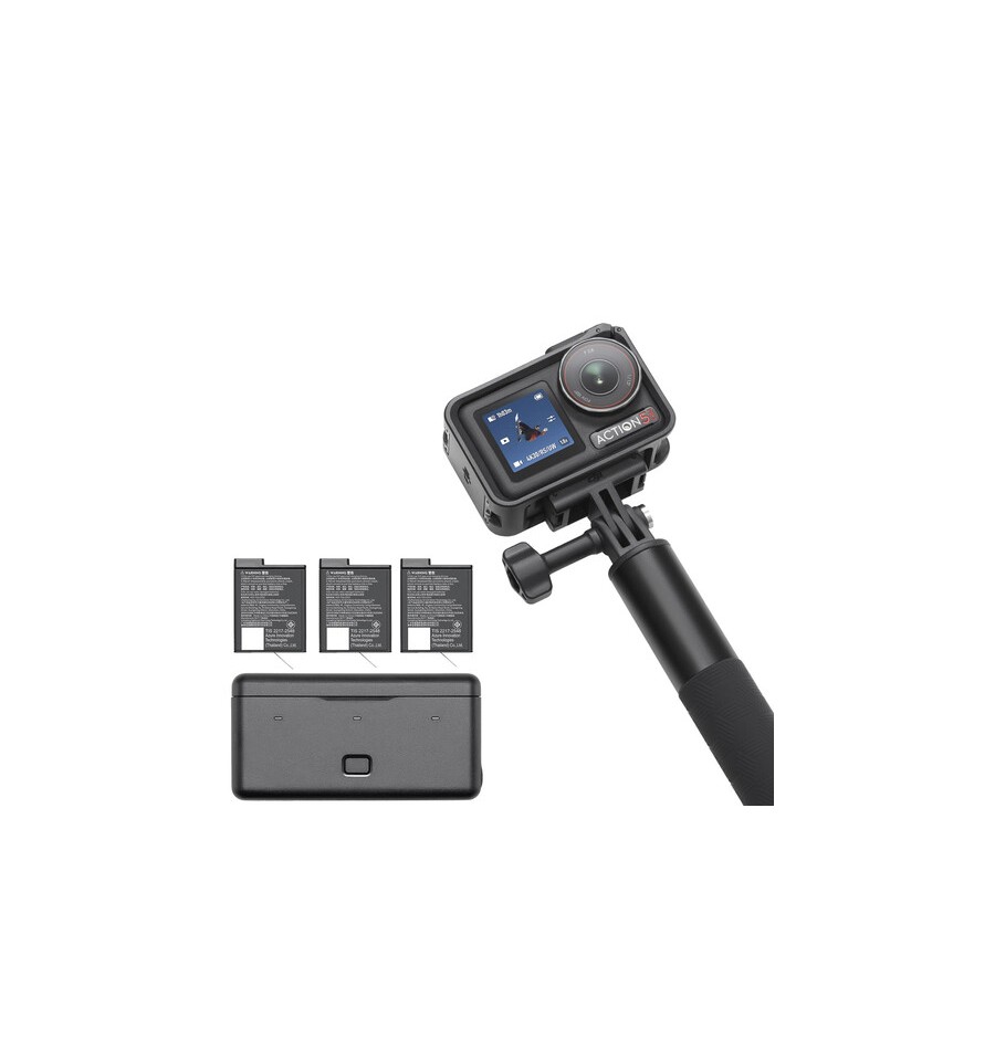 Capture steady, pristine video footage in up to 4K resolution wherever you are with the Osmo Action 5 Pro Adventure Combo from DJI. The Osmo Action 5 Pro features high-bright dual OLED screens, RockSteady and HorizonSteady stabilization systems, a 40MP sensor, a 4-hour battery life, and a waterproof camera body with a pressure gauge. Other features include a 13.5-stop dynamic range, 8K photos, subject centering/tracking, OsmoAudio support, raw footage capture, a 155° field of view, 64GB built-in storage (47GB usable), and an SD card slot that supports up to 1TB cards. The Adventure Combo includes everything in the Standard Combo, as well as three batteries, a battery charging case, an extension rod, and a mini quick release mount.