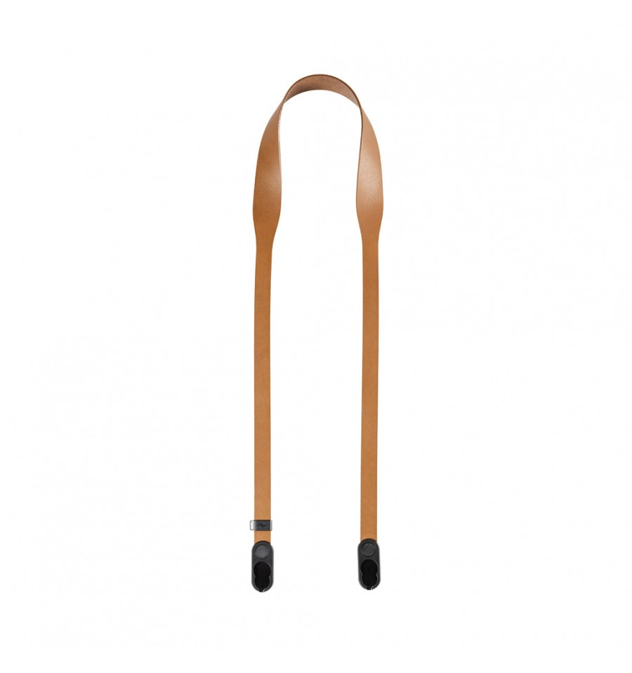 The connectors are a slimmed-down version of the same iconic connection system you'll find on all Peak Design straps, offering secure and effortless camera attachment. A sleek aluminum accessory loop lets you attach a spare Anchor, letting you stow your strap on your body when you remove your camera. On the underside, a custom sealed finish enables the leather to glide smoothly across your body, yet maintains enough grip to not slip off your shoulder.